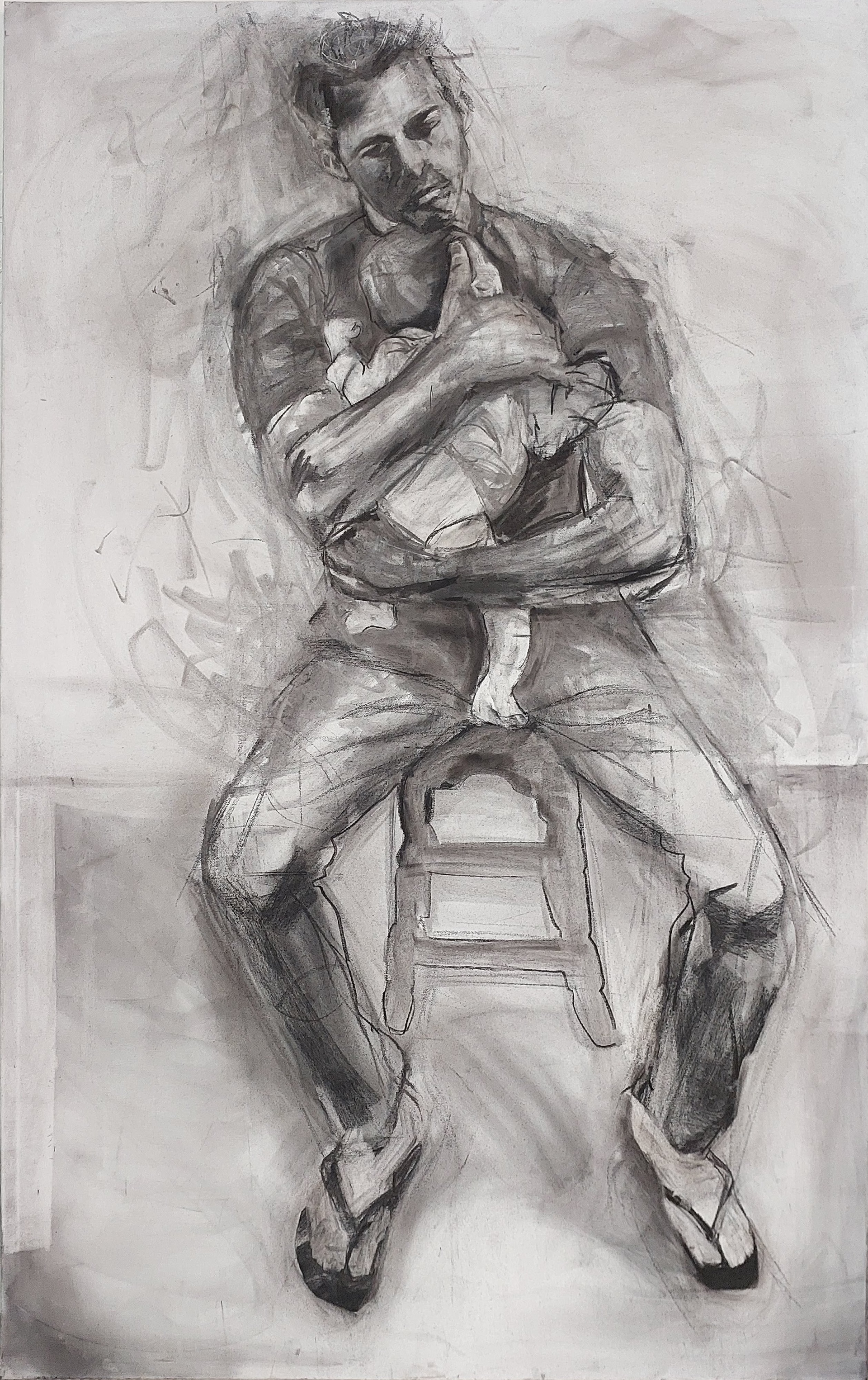 Wild Nursing, 2023, charcoal on paper, 116x150 cm