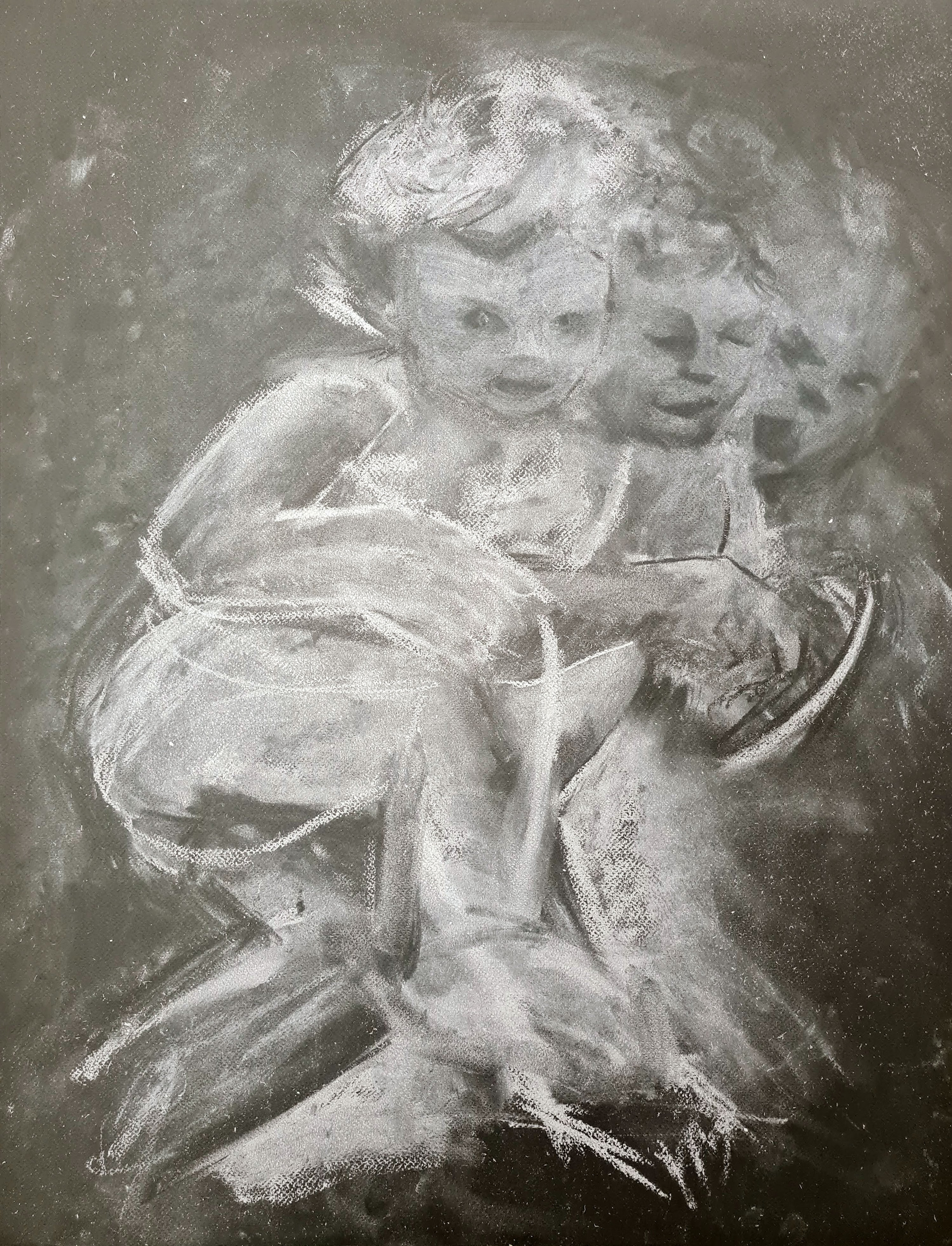 Naomi and Mom, 2022, charcoal and PanPastel on canvas, 100x160 cm