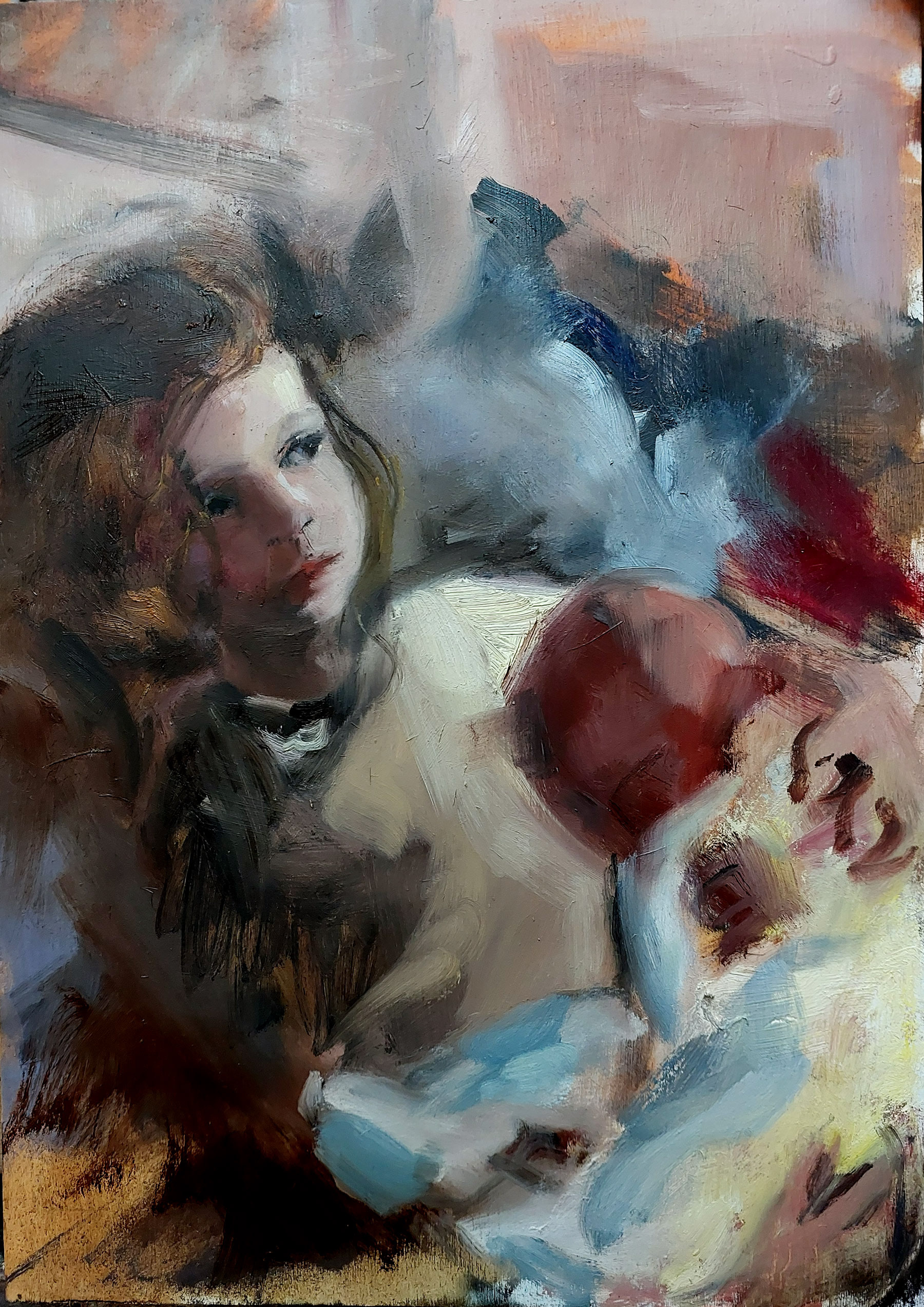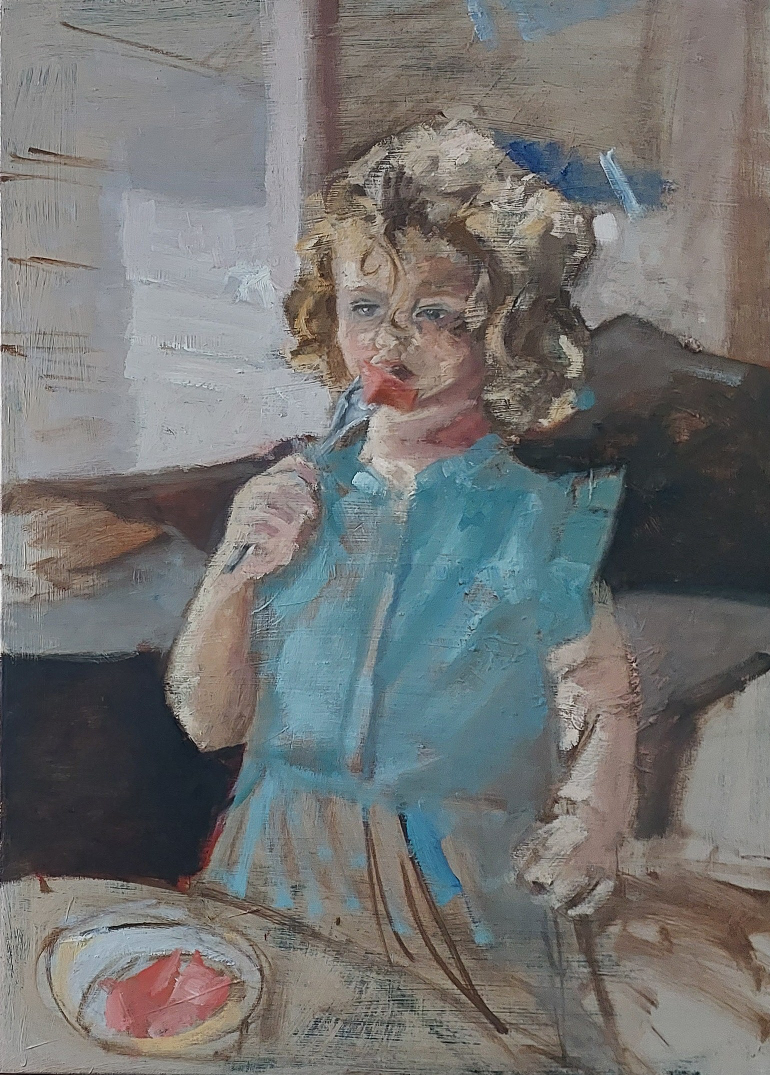 Portrait of 3-year-old Naomi, 2024, oil on canvas, 50x40 cm